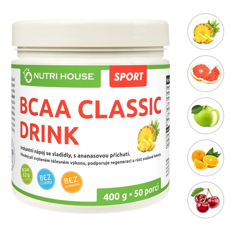 Instantní nápoj se sladidly, s příchutí. Vhodný při zvýšeném tělesném výkonu, podporuje regeneraci a růst svalové hmoty. Příchutě: Ananas, grapefruit, pomeranč, višeň, zelené jablko. Návod použití: Nápoj se připravuje rozmícháním práškové směsi s vodou, jedna dávka (8 g) se rozpustí ve 200 ml stud... celý popis
