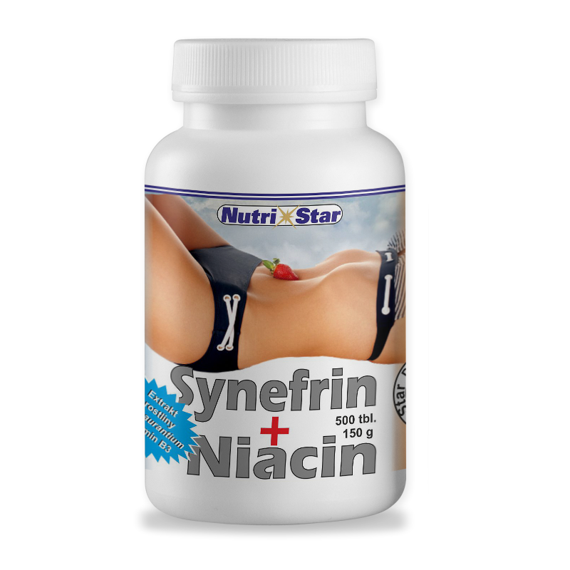 Doplněk stravy. Synefrin 10 mg a niacin 8 mg, v tabletách.